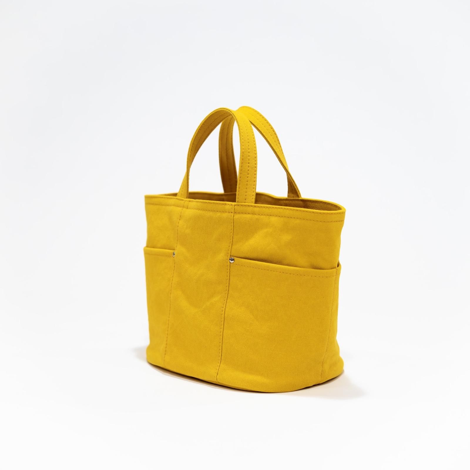 表側にポケットが4つ、内側にはポケットが2つあり、荷物もしっかり入るコンパクトなトートバッグになっています。